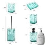 Ensemble de 5 accessoires de salle de bain en plastique transparent comprenant un distributeur de savon rechargeable, une brosse pour les toilettes, un gobelet, un porte brosse à dents et un porte savon. Cet ensemble est à la fois pratique et esthétique avec 5 coloris au choix. Les dimensions sont disponibles sur les dernières photos. Profitez de l’essentiel de la salle de bain à un tarif contenu.